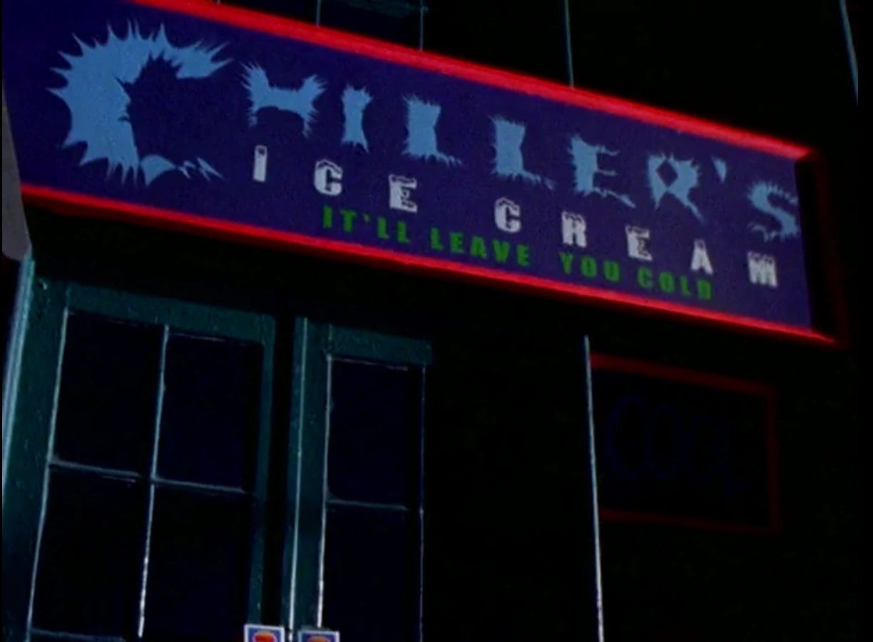 Chiller's Ice Cream Parlor A tall sign next to the parlor's entrance reveals some of the flavors sold there.