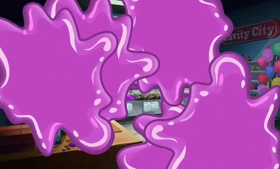 Unfortunately for the campers who won the sports and earned the Camp Jellyjam coins they won for each sport, King Jellyjam seemed to get dirty, sweaty, and smelly just as quickly as anyone can clean him. Because of this, King Jellyjam had them scrub him and hose him day-in and day-out. And if anyone stopped cleaning him, even for a brief moment, King Jellyjam would gobble them up then and there; at least three kids sadly fell victim to that. A little girl named Alicia realized what was happening and tried to warn everyone else at the camp, but the counselors caught her and she was forced to wash the evil purple blob too.