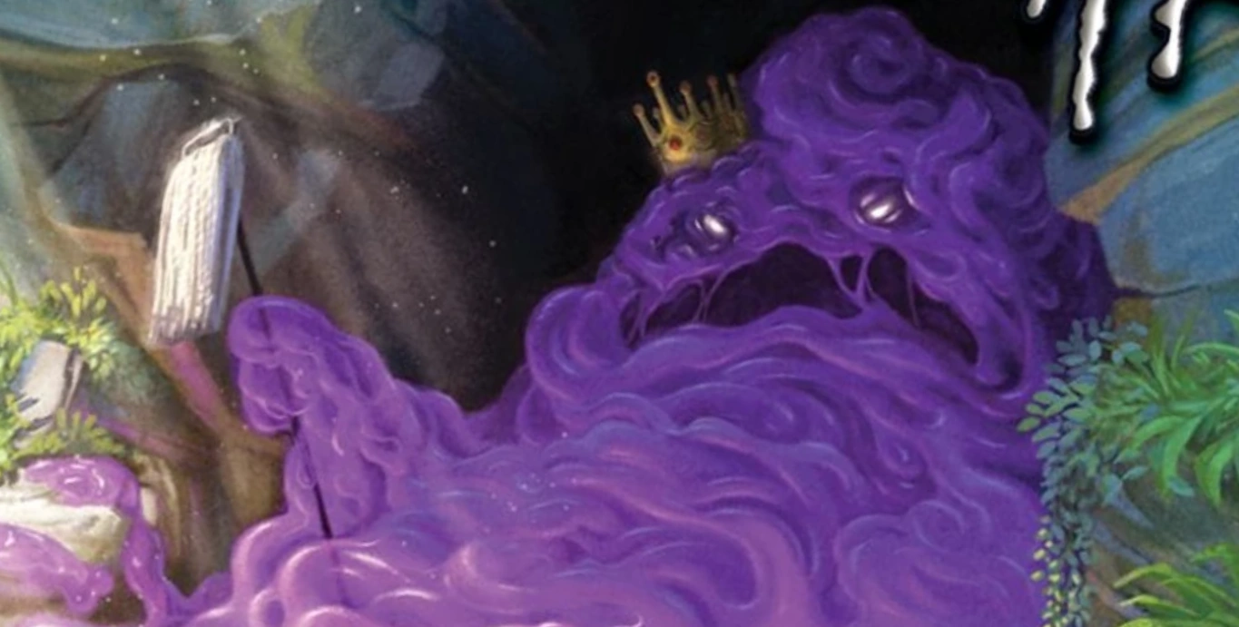 King Jellyjam is a huge glob of purple slime, with enormous watery yellow eyes, a fat-lipped, two-tongued mouth and wore a gold crown on his head. His body reeks of rotten eggs and he sweats snails.