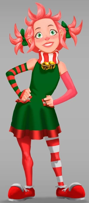 She is incredibly cheerful, and spreads joy wherever she goes. She encourages people to say "Pretty-bitty please with Christmas trees" to get what they want.