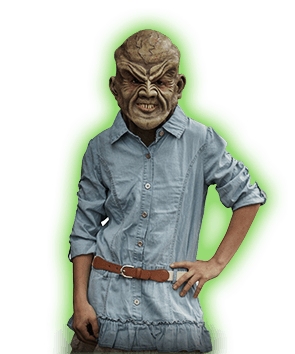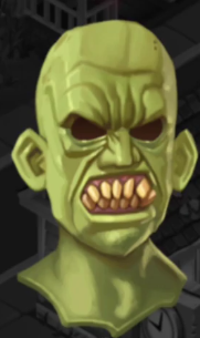 The Haunted Mask is actually one of many, created by a nameless shopkeeper long ago. The shopkeeper had no love for himself, for he was born with an ugly face. As a grown man, the shopkeeper became a scientist in the field of biological engineering and in turn used this to create a beautiful human prosthetic face. He made this face of human flesh and made it so that when he put it on it would attach itself to his flesh and would remain so forever. But something went wrong: when he put on the beautiful Mask it changed, it became hideous. No matter what he did to stop the decay, the face turned into an ugly monstrosity. The face turned a dead green, its teeth grew into animal fangs, and its flesh became contorted and deformed. The shopkeeper did the only thing he could do. Knowing that the face he made was never supposed to be removed, he took a knife and carved deep into the skin where the Mask was supposed to end. This first failed attempt became the Haunted Mask.
